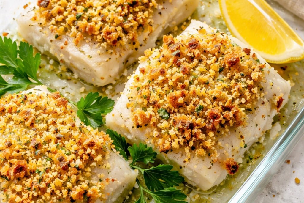 BEST Crispy Baked Cod with Lemon Garlic Panko
