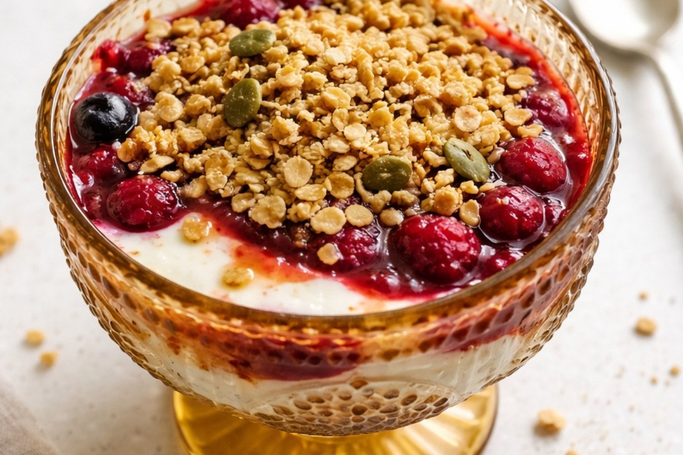 - Top the yogurt with a generous spoonful of the homemade berry compote.
