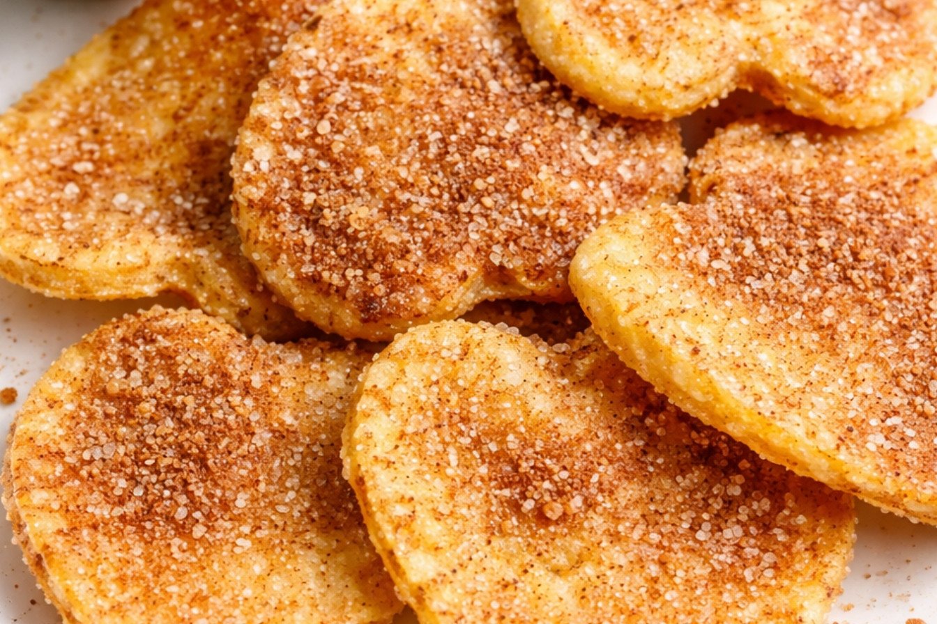 It is very easy. Mix cinnamon and sugar. Cut tortillas into shapes. Brush them lightly with melted butter. Sprinkle your cinnamon sugar on both sides. Then bake until golden and crisp. The full recipe is above with all the simple steps. You will have a delicious snack in no time.