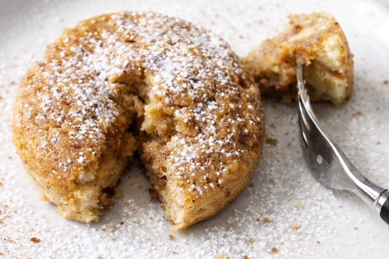 Sometimes you just want a warm treat. You don’t want a whole loaf of banana bread. That’s where this little cake comes in. It’s just for you. It’s ready in minutes.