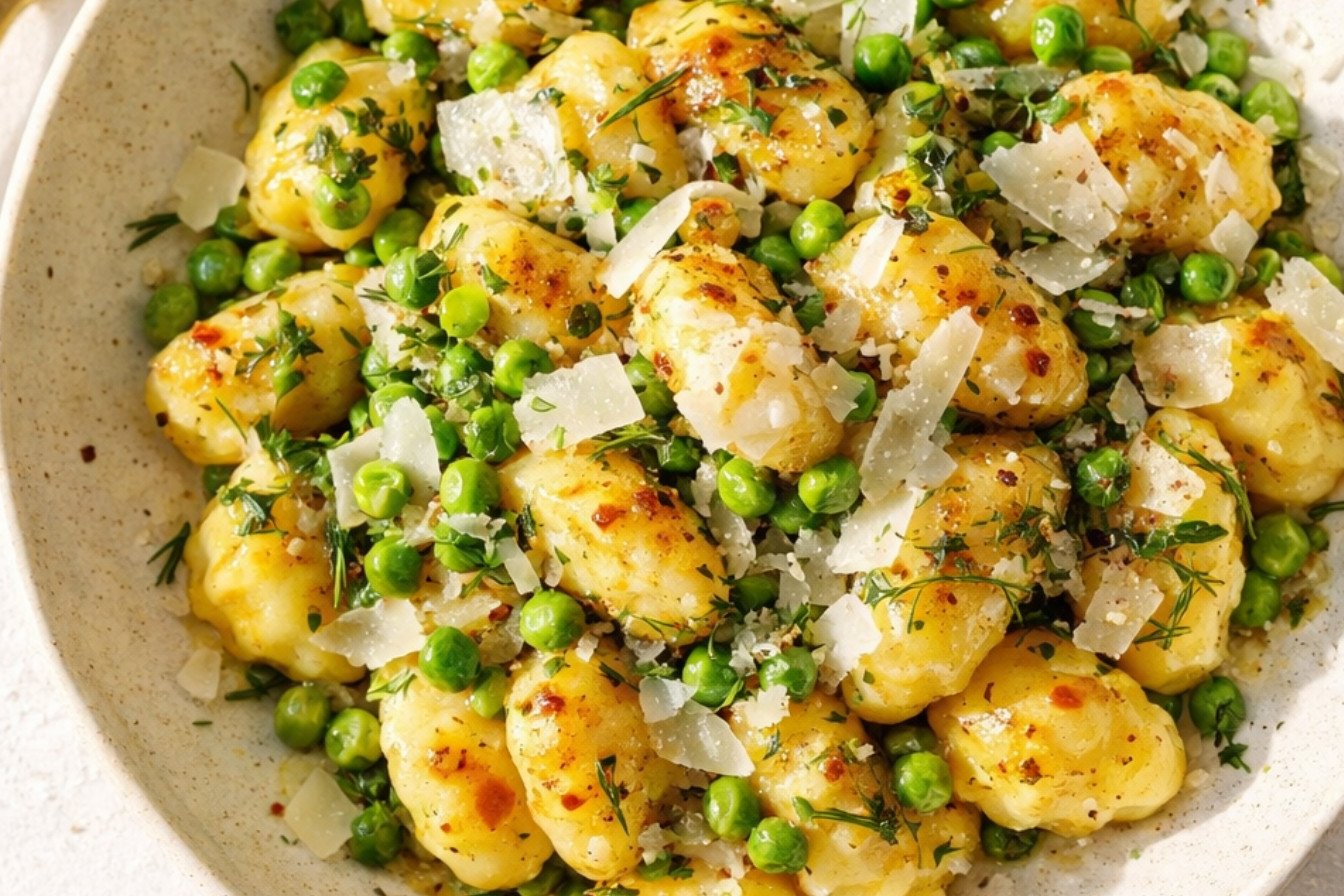 You start by crisping the gnocchi in oil and butter. Then sauté garlic until it smells amazing. Add chicken broth and mashed peas to make a creamy base. Finish with lots of Parmesan, lemon, and butter. Stir until it’s a lovely, cozy sauce. It comes together in one pan. It’s a simple process that feels very fancy. The key is using good, fresh Parmesan cheese for the best flavor.