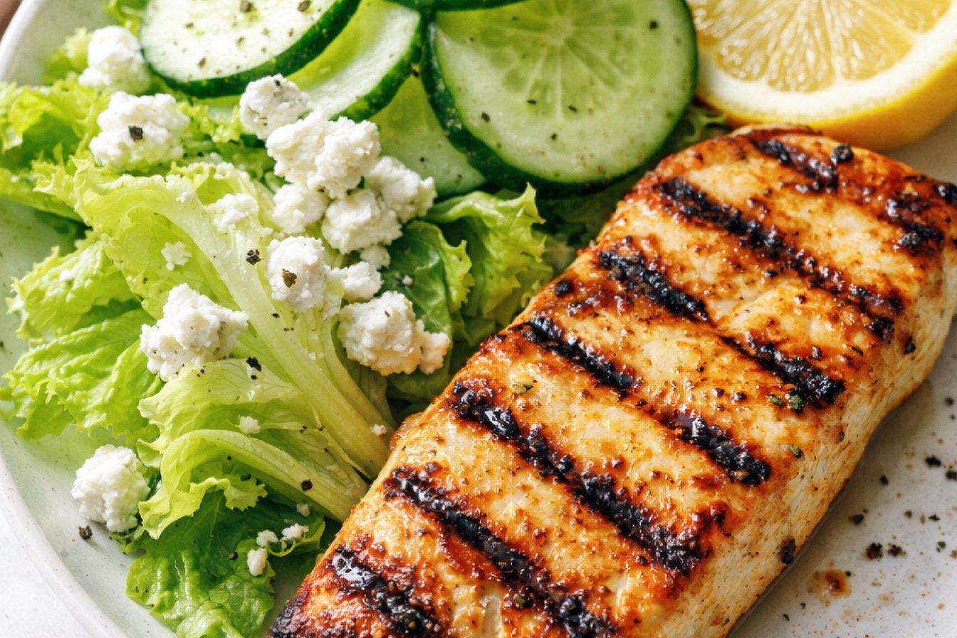 Grilled Chicken Souvlaki and Fresh Cucumber Salad