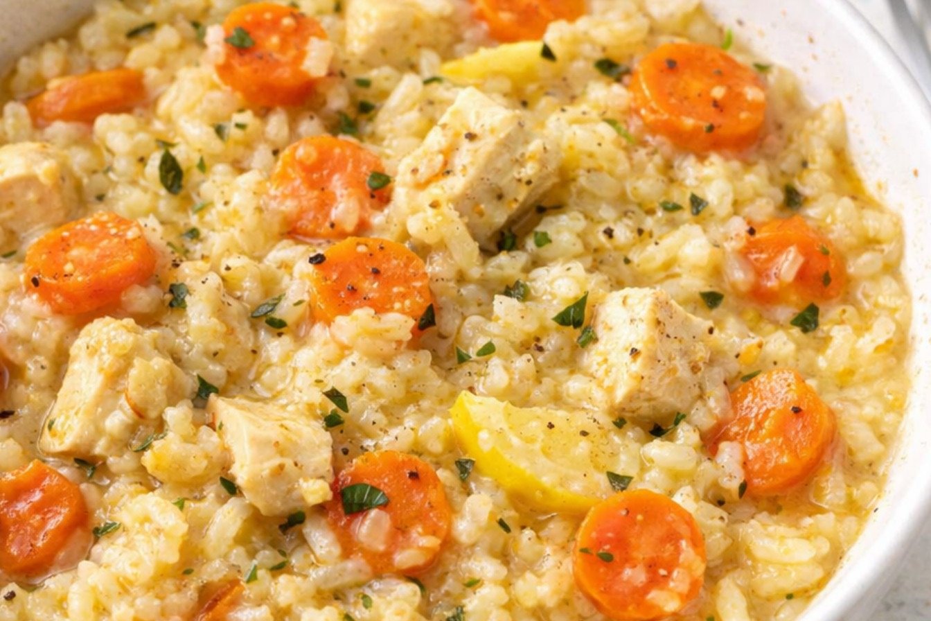 A comforting and easy one-pot meal featuring tender chicken, fluffy rice, and carrots, all cooked together in a savory, buttery broth.