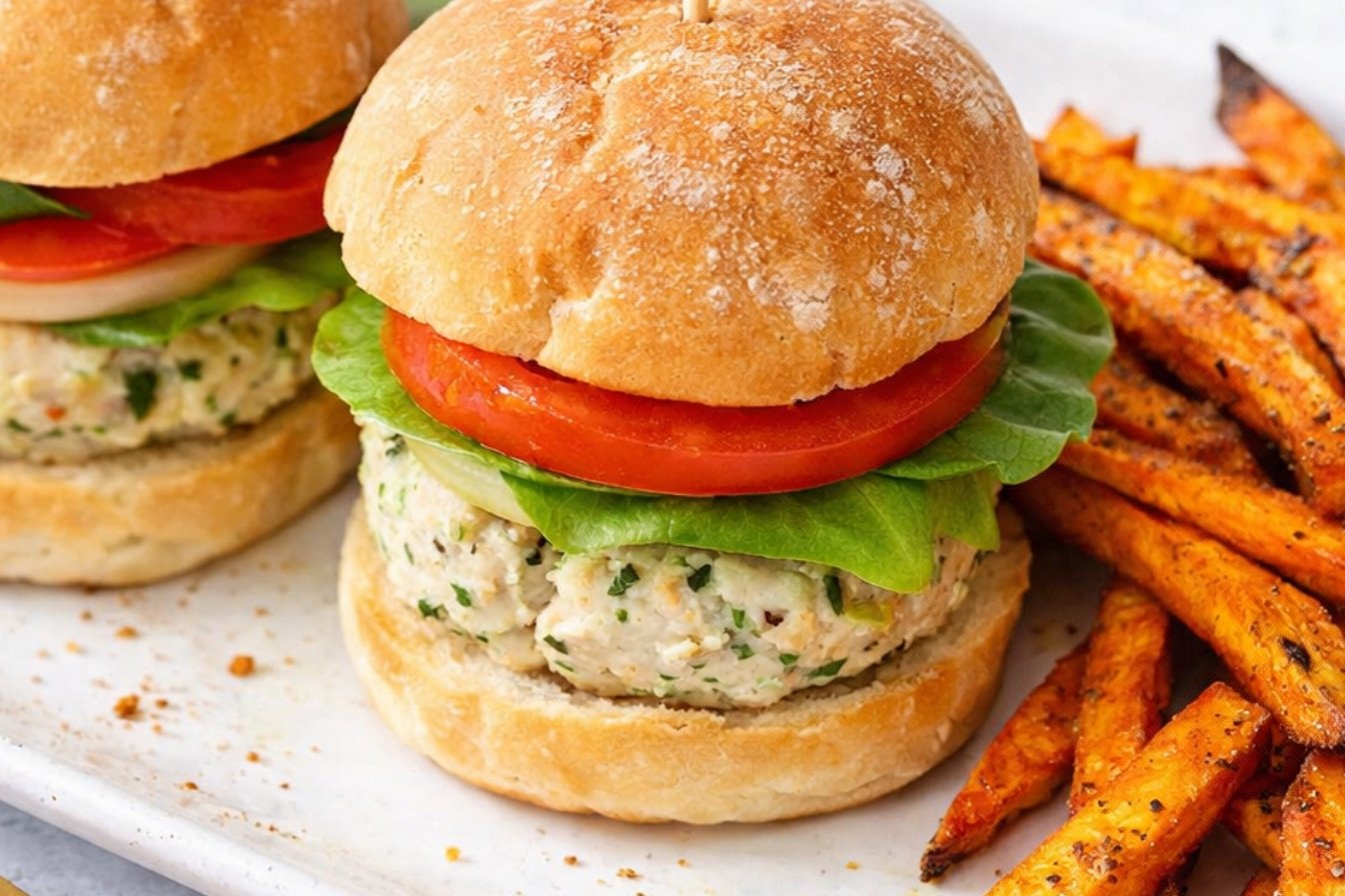 Enjoy these flavorful Mini Turkey Sliders served with crispy, cheesy Baked Sweet Potato Fries for a perfect meal.