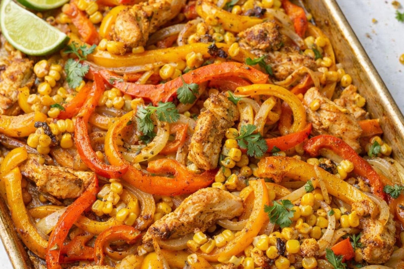 Quick Sheet Pan Fajitas with Corn and Peppers