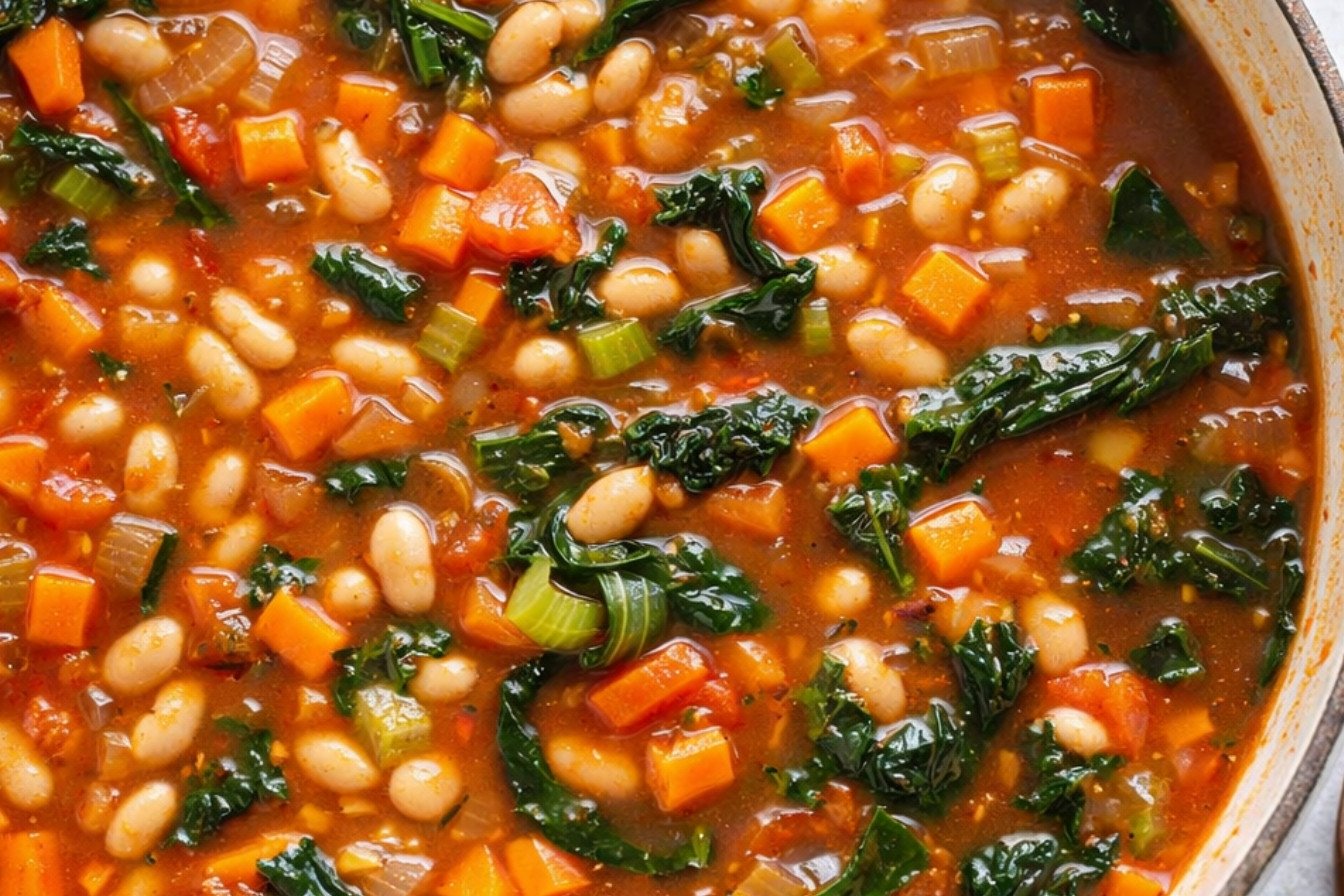 A hearty and nutritious soup ready in minutes, featuring white beans, kale, and savory vegetables.