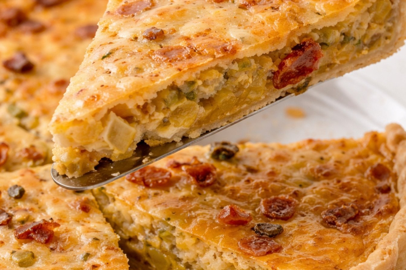 A simple pie crust or puff pastry both work well. For this easy bacon tart, I use a store-bought pie crust. It is reliable and saves time. A buttery crust holds the rich filling nicely. It makes your holiday brunch recipes feel special without extra work.