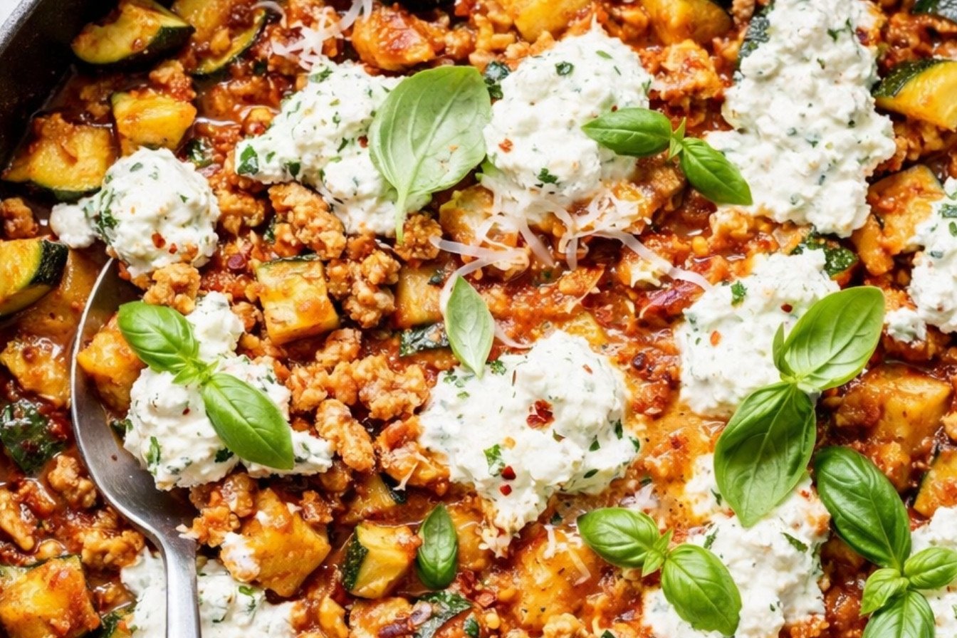 Ground Turkey Zucchini Skillet with Ricotta